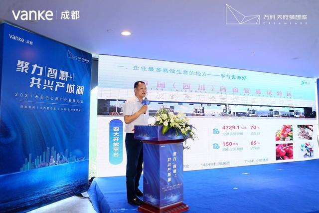 在分享环节,万科西南区域产办业务天府双流战区负责人刘向东也以“天府怡心湖畔 做企业的时间合伙人”为主题发表了自己的观点并分享了万科与不同企业和企业家实现创业梦想的小故事,在从小到大、从成都到全国、从沿海到西部,万科始终助力合作企业一同深耕发展。