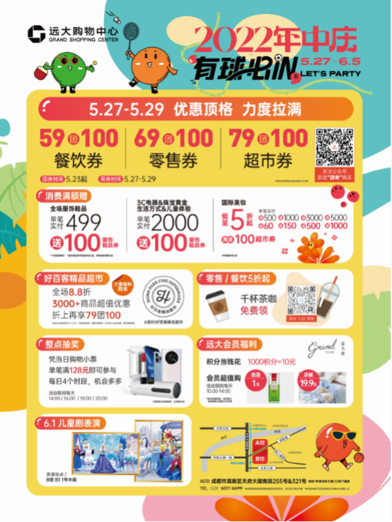 5月27日-6月5日,成都远大购物中心2022周年庆即将启动。紧跟成都市人民政府主办的成都“520”消费券促销费活动,场内超过百家商户均支持收券,叠加年中庆顶格优惠,力度拉满。