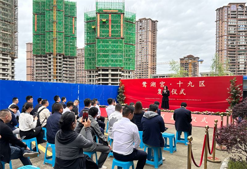 四川新闻网成都4月30日讯 市场振奋的好消息不断传来!4月28日,成都购房政策调整以及近日地产股大涨,持续为市场的稳定注入活力与信心。在温江区委区政府、职能部门及管理人团队、债务人等多方共同努力和积极配合下,4月30日,位于成都市温江区的国色天乡鹭湖宫项目19区项目的复工仪式再次为各方带来了利好预期。该项目是住宅标志性项目复工,带来了强烈的示范效应,并体现出投资方看好成都市场和未来预期。同时,复工的本身也化解了业界的一些忧虑,保障了购房者的应得权益。